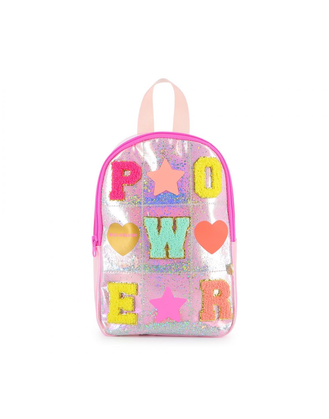 - Το σακίδιο Billieblush είναι φτιαγμένο από glossy ύφασμα με ιριδίζον glitter.