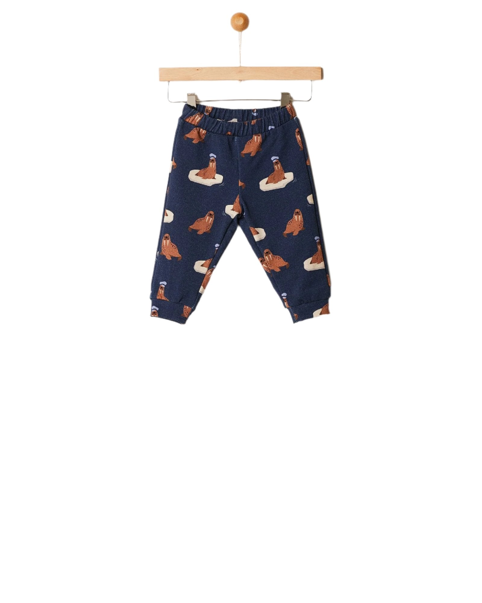 Βρεφικό παντελόνι φούτερ οργανικό μπλέ με ταμπά φώκιες Yell-oh