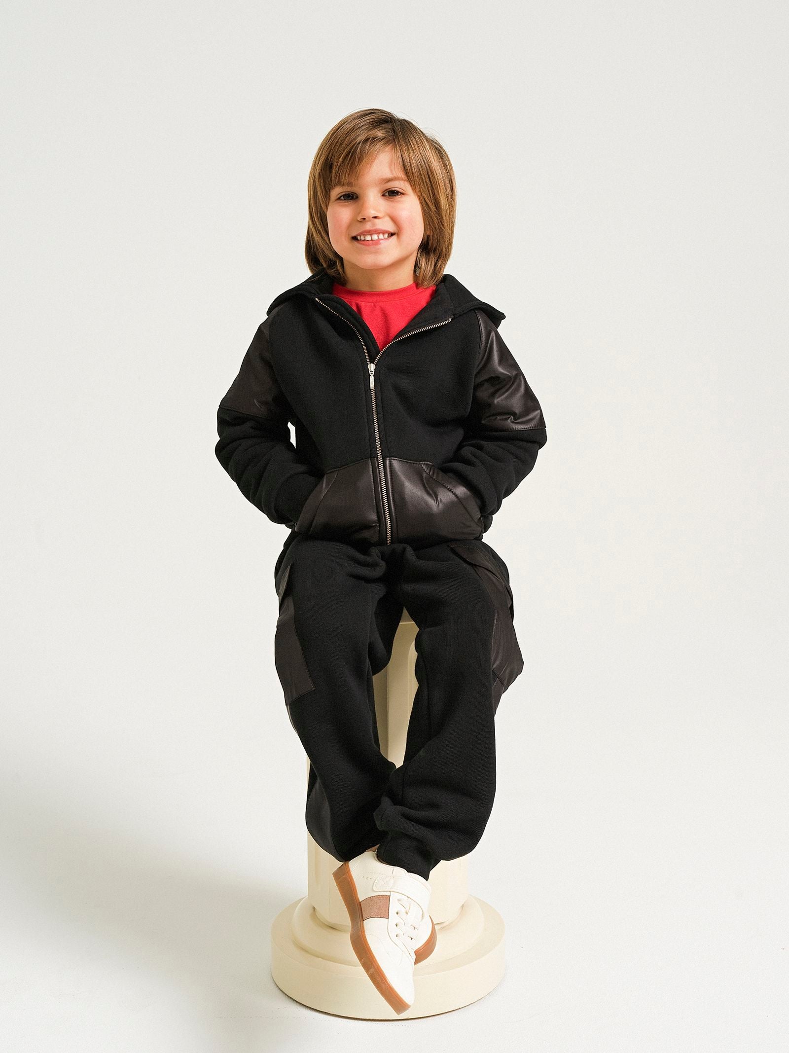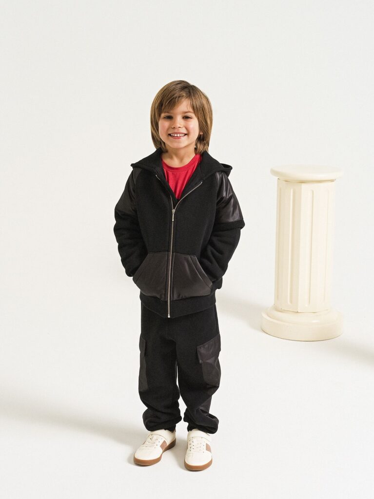 Παιδική ζακέτα φούτερ μουλινέ με κουκούλα μαύρη