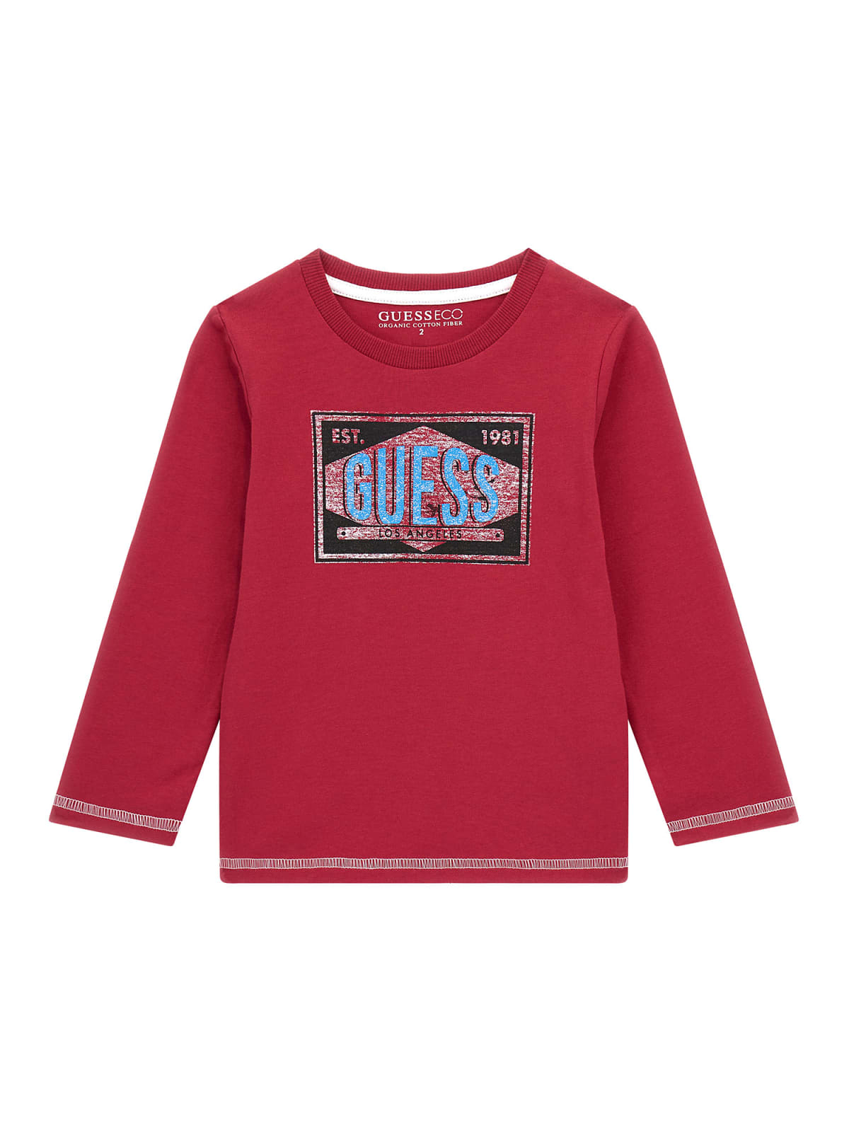 Παιδική μακρυμάνικη μπλούζα κόκκινη με στάμπα μπλε Guess