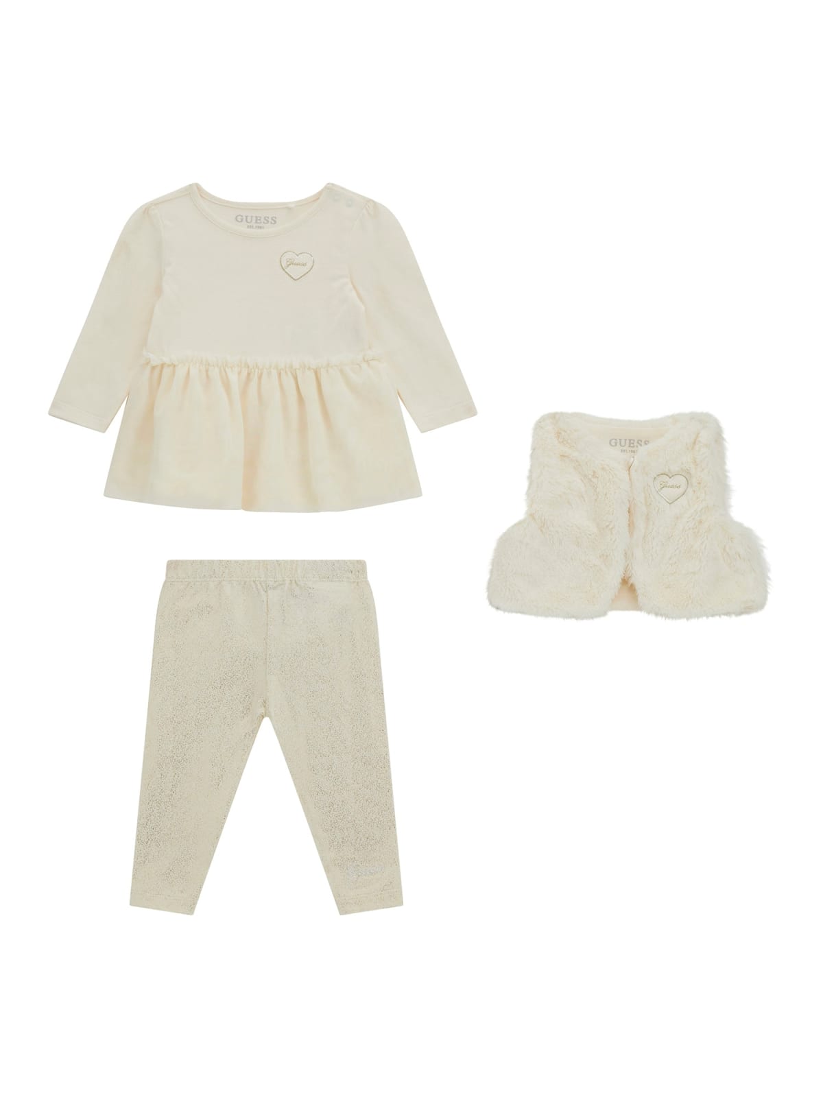 Βρεφικό σετ με κολάν και γουνάκι μπεζ Guess